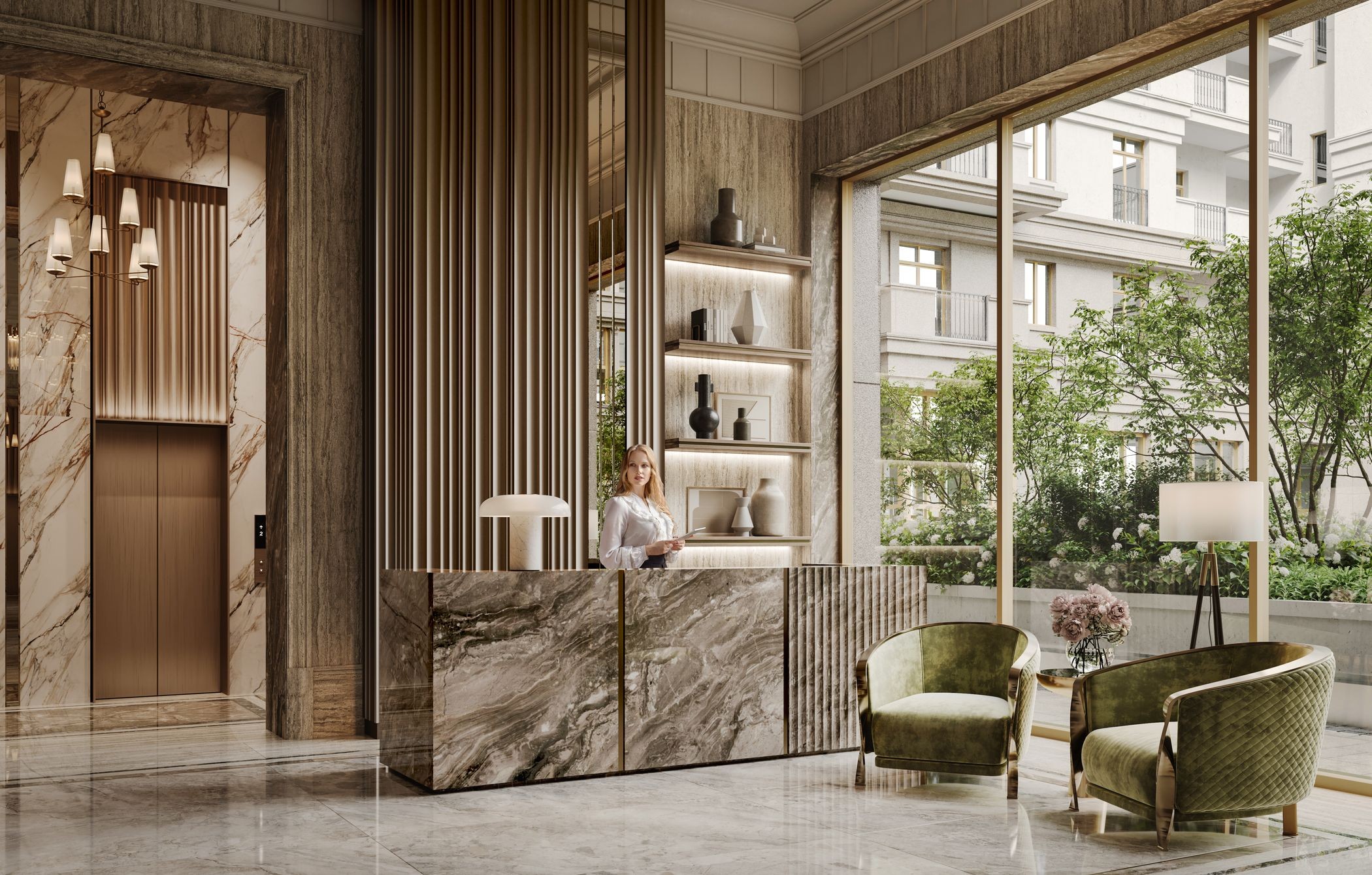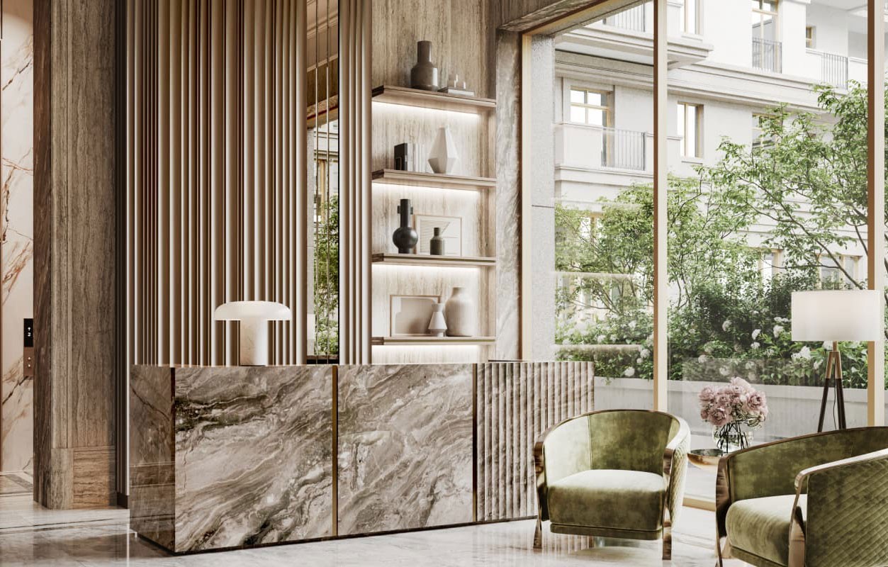 Сервисы дома работают по принципу обслуживания элитного отеля с круглосуточным доступом на ресепшн для высочайшего уровня комфорта и безопасности. Резиденты могут вызвать клининг, отдать вещи в химчистку, организовать доставку, не выходя из собственной квартиры.